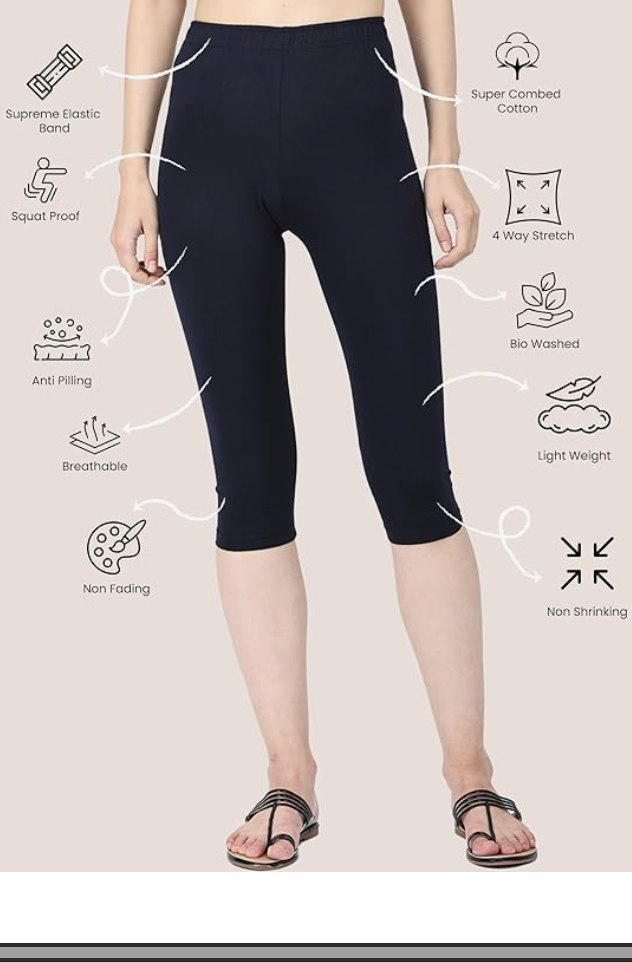 • Mid-calf (capri) length for a stylish and versatile look